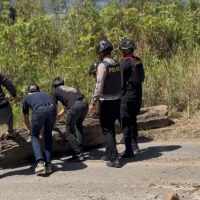 Personel Gabungan Polres Dogiyai Bersihkan Akses Jalan Saat Patroli