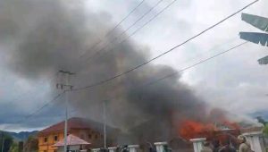 Faktanabire.com – Dogiyai, 7 April 2025 Kebakaran hebat melanda Aula Sekretariat Daerah (Sekda) Kabupaten Dogiyai, yang digunakan sebagai kantor Bupati sementara, Provinsi Papua Tengah, pada Senin siang sekitar pukul 12.30 WIT. Api berkobar besar dan hingga kini belum berhasil dipadamkan. Bangunan aula dilaporkan hangus terbakar seluruhnya.