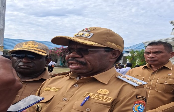 Ia menyampaikan hal itu kepada wartawan usai memimpin apel gabungan awal bulan yang dirangkaikan dengan penyerahan SK PPPK dan kenaikan pangkat ASN di halaman Kantor Bupati Nabire, Senin (2/3/2026).