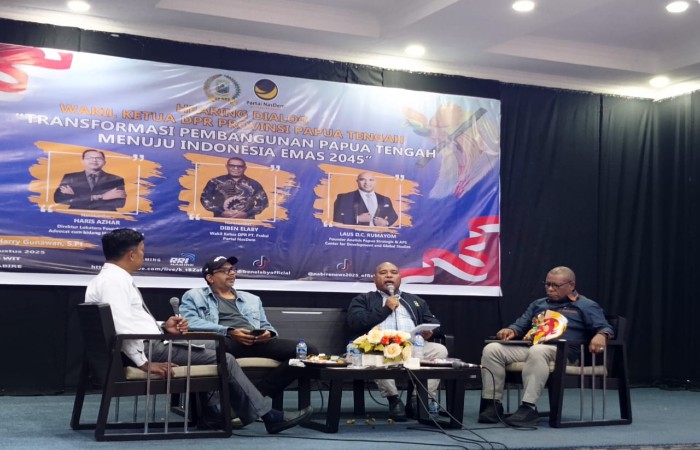 Nabire, 4 Agustus 2025, Faktanabire.com — Wakil Ketua I DPRP Papua Tengah, Diben Elaby, menggelar hearing dialog bersama dua narasumber nasional, Haris Azhar dan Laus D.C. Rumayom, di Aula RRI Nabire, dengan tema “Transformasi Pembangunan Papua Tengah Menuju Indonesia emas 2045”