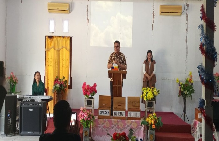 Pada kesempatan tersebut, Kombes Pol Raymond Masengi mengajak jemaat untuk meningkatkan kewaspadaan terhadap potensi bencana alam, terutama di tengah perkembangan kondisi cuaca di Provinsi Papua Tengah.