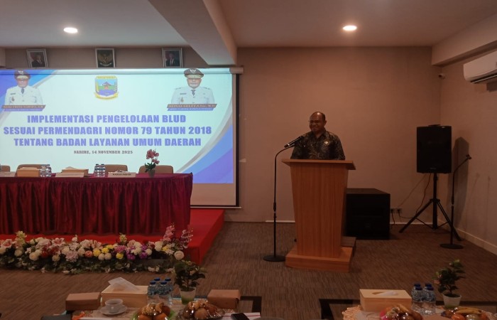 Nabire, 14 November 2025, FaktaNabire.com — Pemerintah Provinsi Papua Tengah selenggarakan sosialisasi implementasi pengelolaan Badan Layanan Umum Daerah (BLUD) sesuai Permendagri Nomor 79 Tahun 2018 tentang Pedoman Pengelolaan Keuangan BLUD, di Ruang Pertemuan Hotel Charmel, Jalan Ch. Martha Tiahahu, Kalibobo, Nabire, Jumat (14/11).