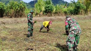 Faktanabire, Danramil 1705-02/Napan Letda Inf La Samute beserta 2 orang anggota melaksanakan pendampingan menanam padi lahan milik Bpk Ngadiman seluas 1 Ha, warga Kampung Biha Distrik Makimi Kab. Nabire Prov. Papua Tengah, Rabu (19/02/2025).