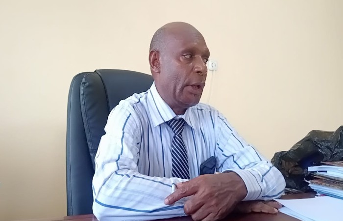 Rektor USWIM, Petrus Tekege, SH., MH., diruang kerjanya, Selasa, 18/11/2025. (Dok. FaktaNabire.com)